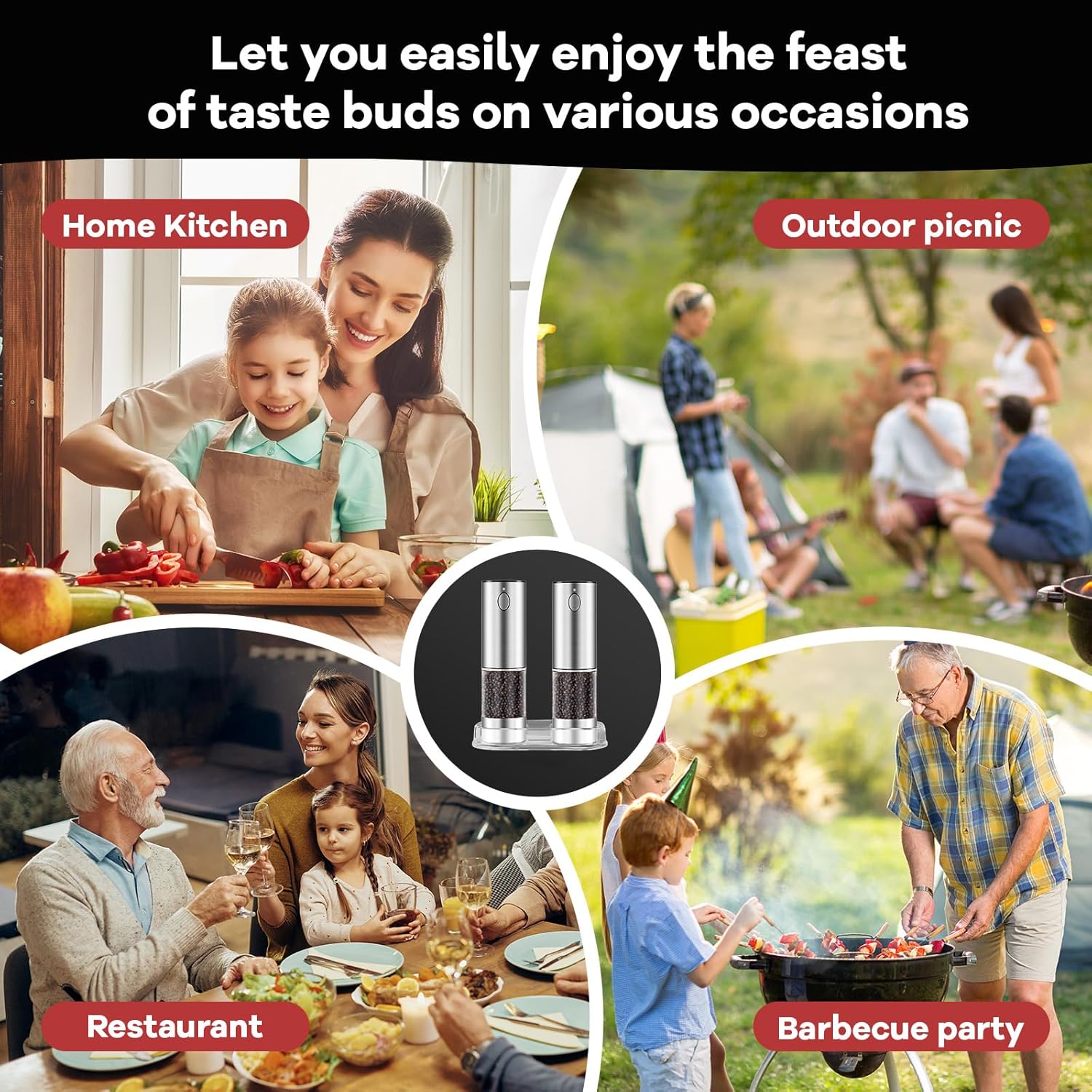 Our amazing electric salt and pepper grinder is made of high-quality stainless steel and ABS, which is perfect for weddings, birthdays, housewarmings, Mother's Day, Father's Day and Christmas. Surprise your loved ones. The grinder can be a special gift for women and people who love cooking